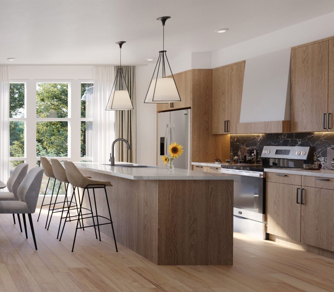 These for-sale homes are ideal for growing families or those desiring more space and privacy. Offered in 3- and 4-bedroom floorplans from 1,654 to 2,727 square feet, The Bungalows feature private backyards and access to parks, playgrounds, trails, and sport courts.