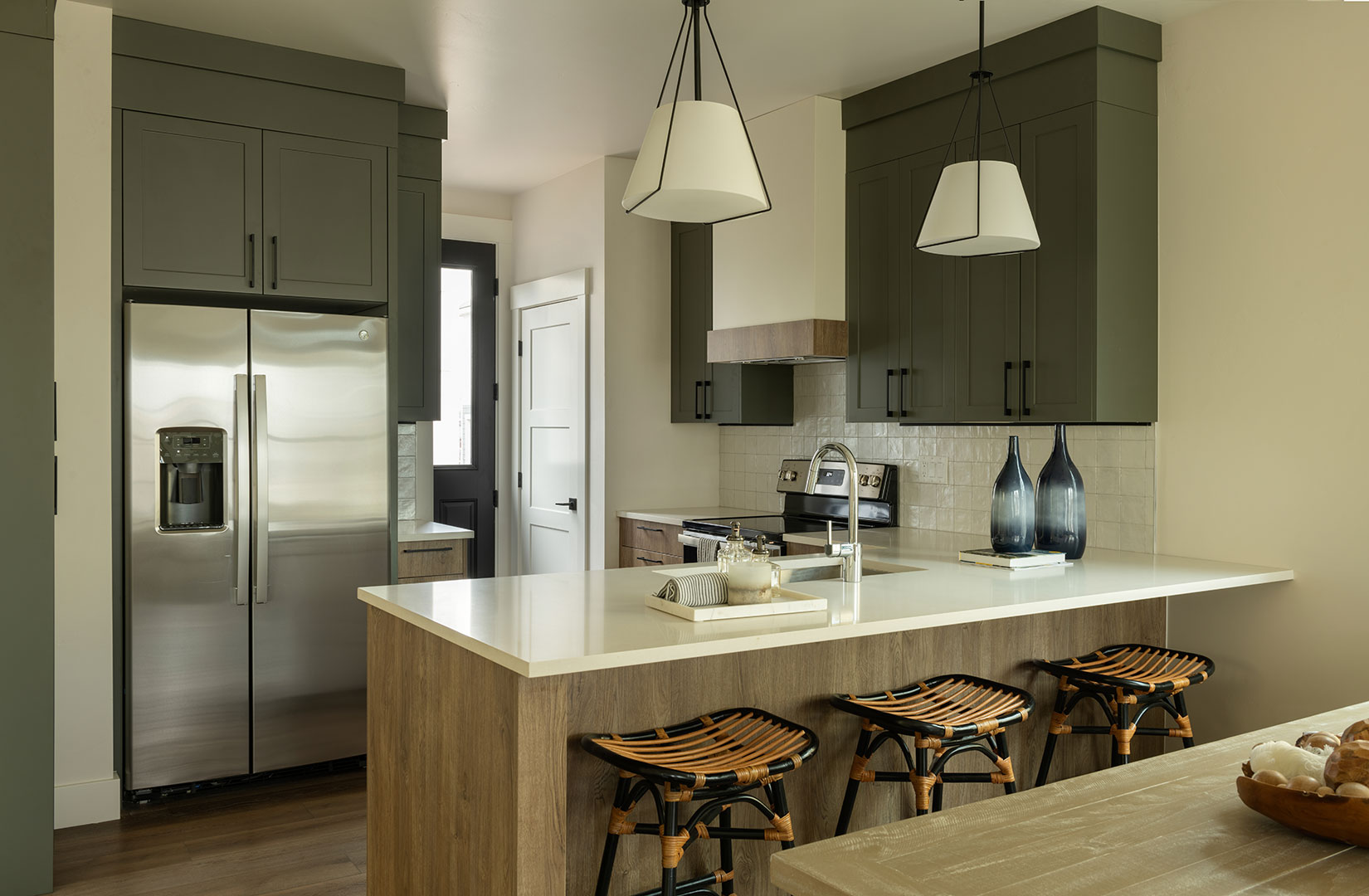 These for-sale homes are ideal for growing families or those desiring more space and privacy. Offered in 3- and 4-bedroom floorplans from 1,654 to 2,727 square feet, The Bungalows feature private backyards and access to parks, playgrounds, trails, and sport courts.